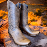 Ein klassischer Cowboystiefel in jeder Hinsicht. Dieser Stiefel ist aus Öl-Gegerbten Kalb gemacht und hat Charakter, der es absolut atemberaubend macht. Wir machen individuelle Stiefel und das ist der Look, der am meisten nachgefragt wird, also können wir es Ihnen jetzt in einem Lagerstiefel anbieten.