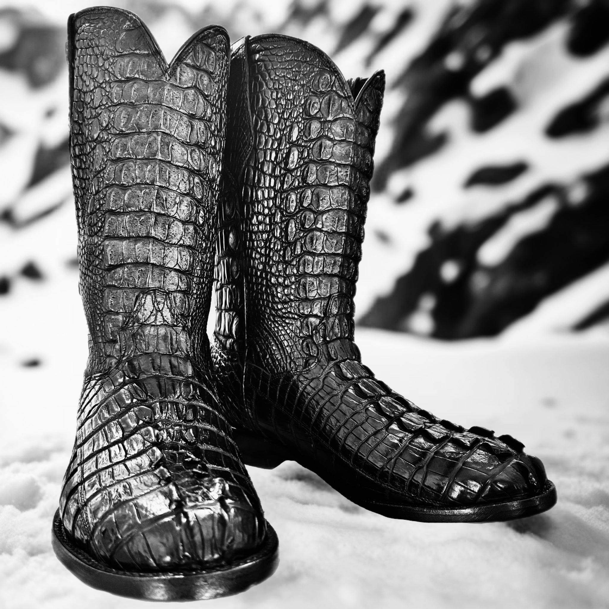 These unique boots are made with our exclusive Mortelliti Crocodile Tail and Hornback. The vamps are 'V' tail-cut with giant Hornback tops. There are no boots like this on the market - if you want something that is unique and stands out, these are your boots